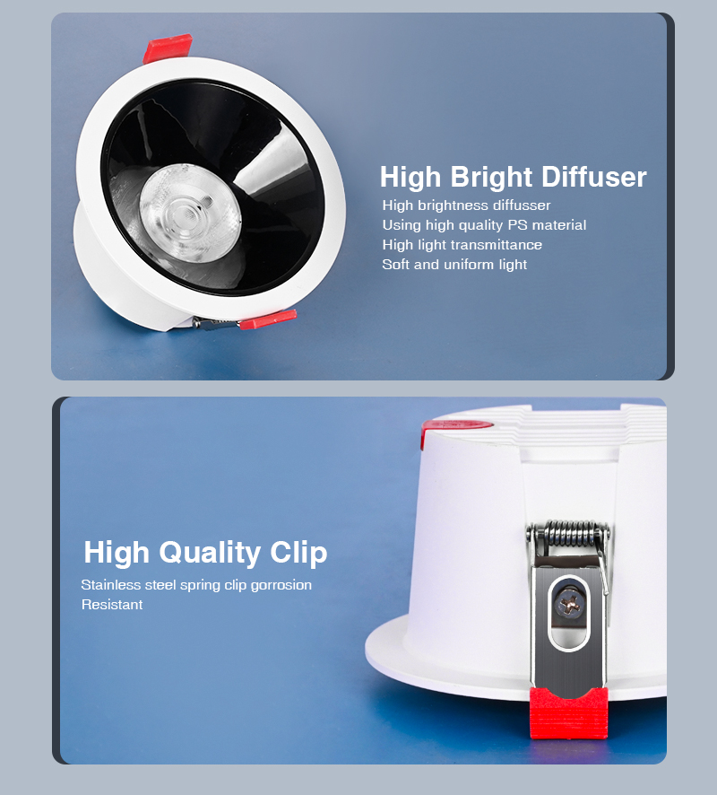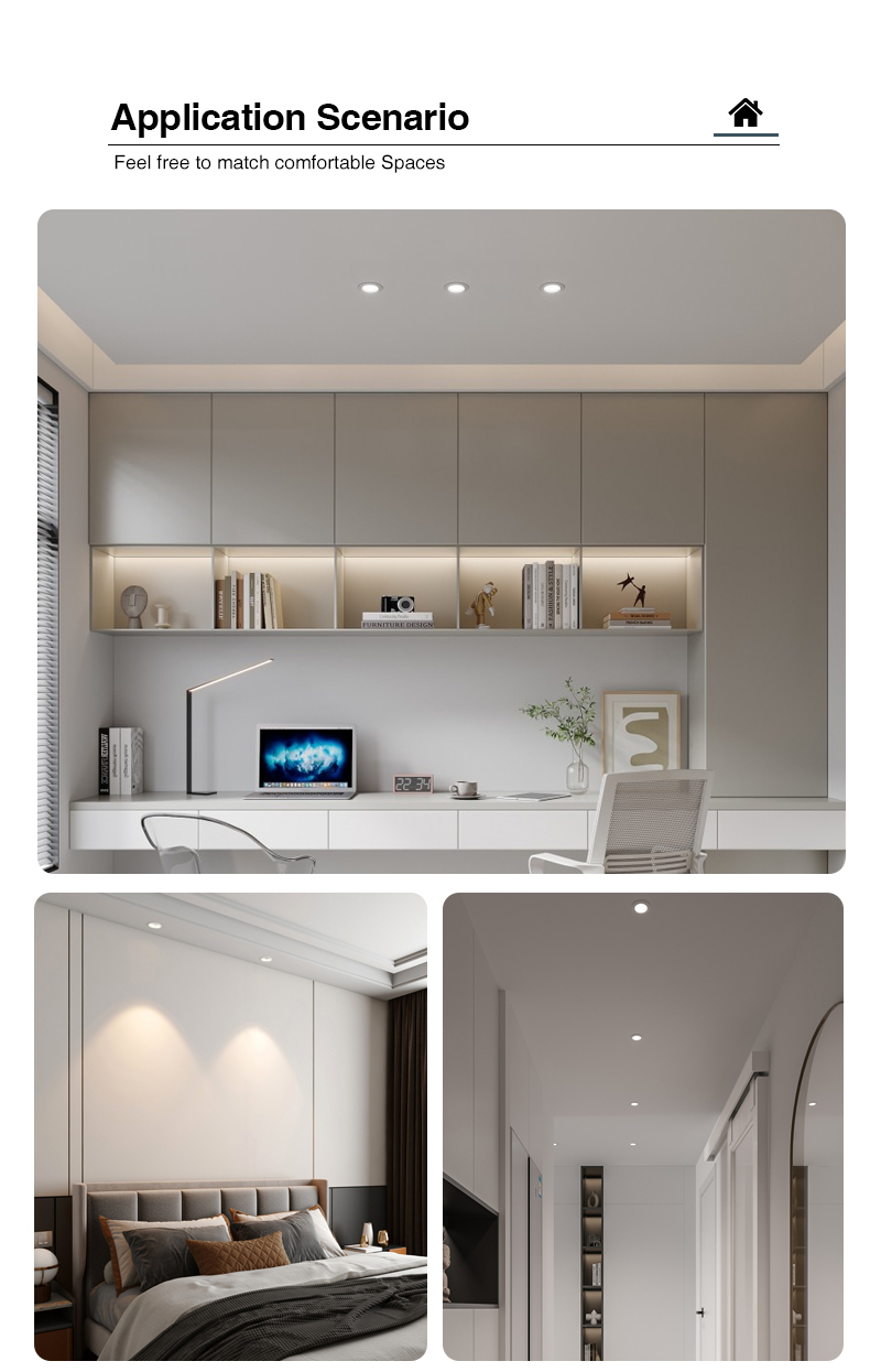 This downlight is stylish and simple, with iron + plastic design, economical and affordable. A variety of sizes and color temperatures are available, and customization is supported. The recessed down light use the new generation of LED chips with higher lumens and lower power, saving you up to 80% in energy costs. This LED recessed light can be embedded in furniture or covered to create a warm atmosphere. It is very suitable for home, office, shop, supermarket, bar, cafe, exhibition, hall, museum, hotel, restaurant, decorative lighting and other purpose lighting.
