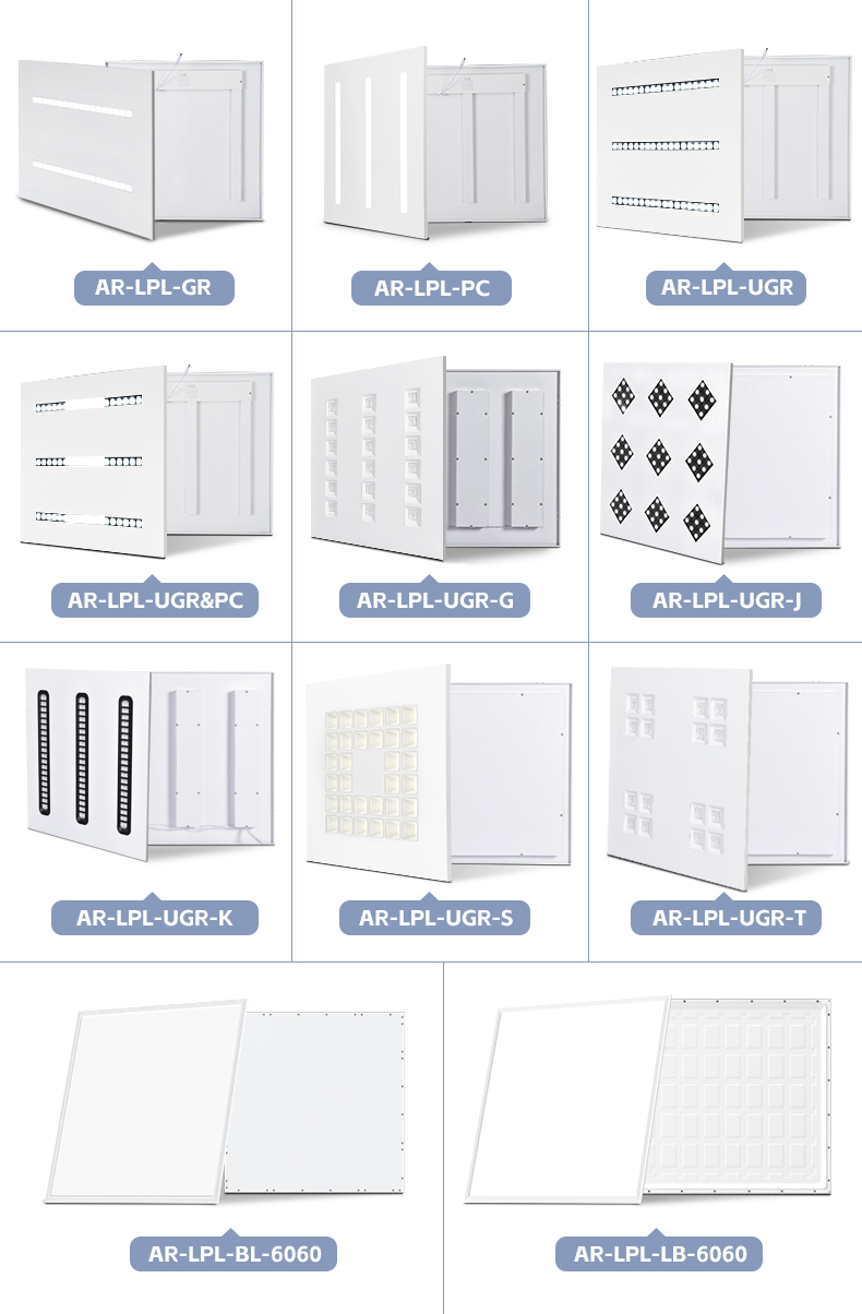 | AR-LPL-UGR-S | 595*595 | 40W | 2835 144pcs 9V 1.5W 130-140lm/1pcs |